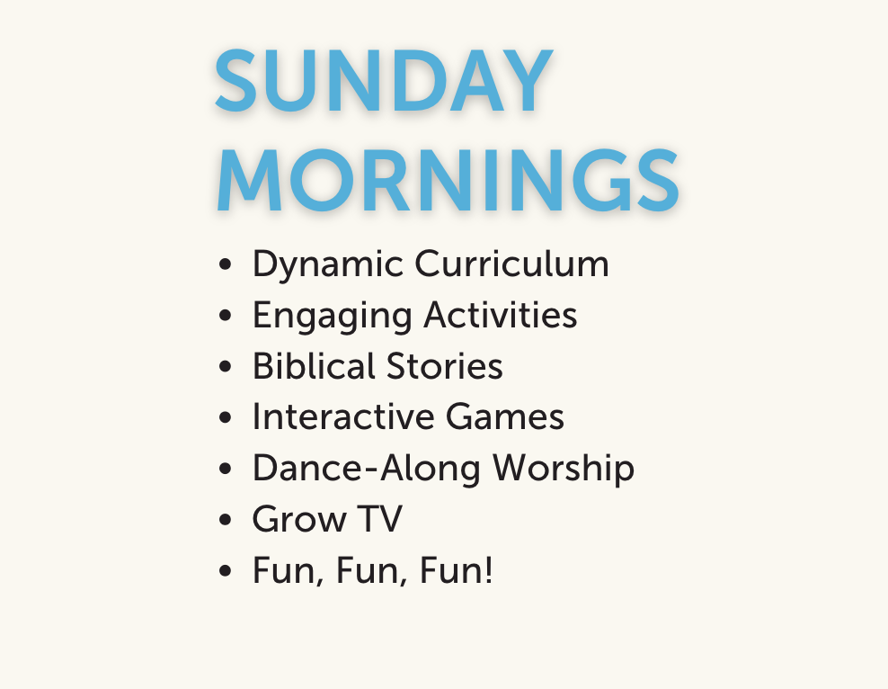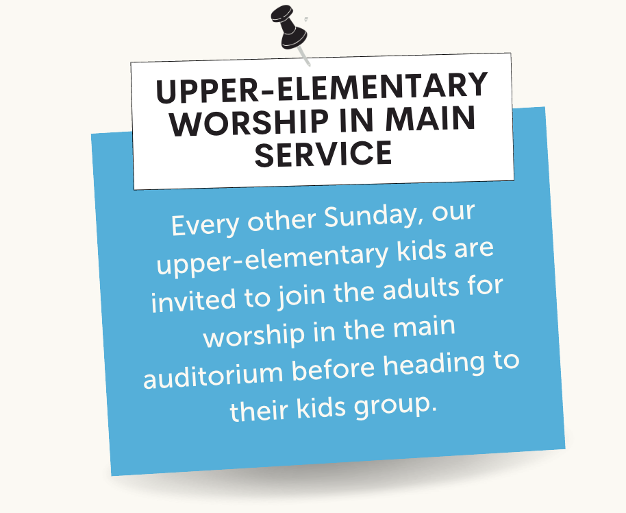 Your kids will love learning about God in a fun environment where they can play, create, and learn along with their peers and great leaders.